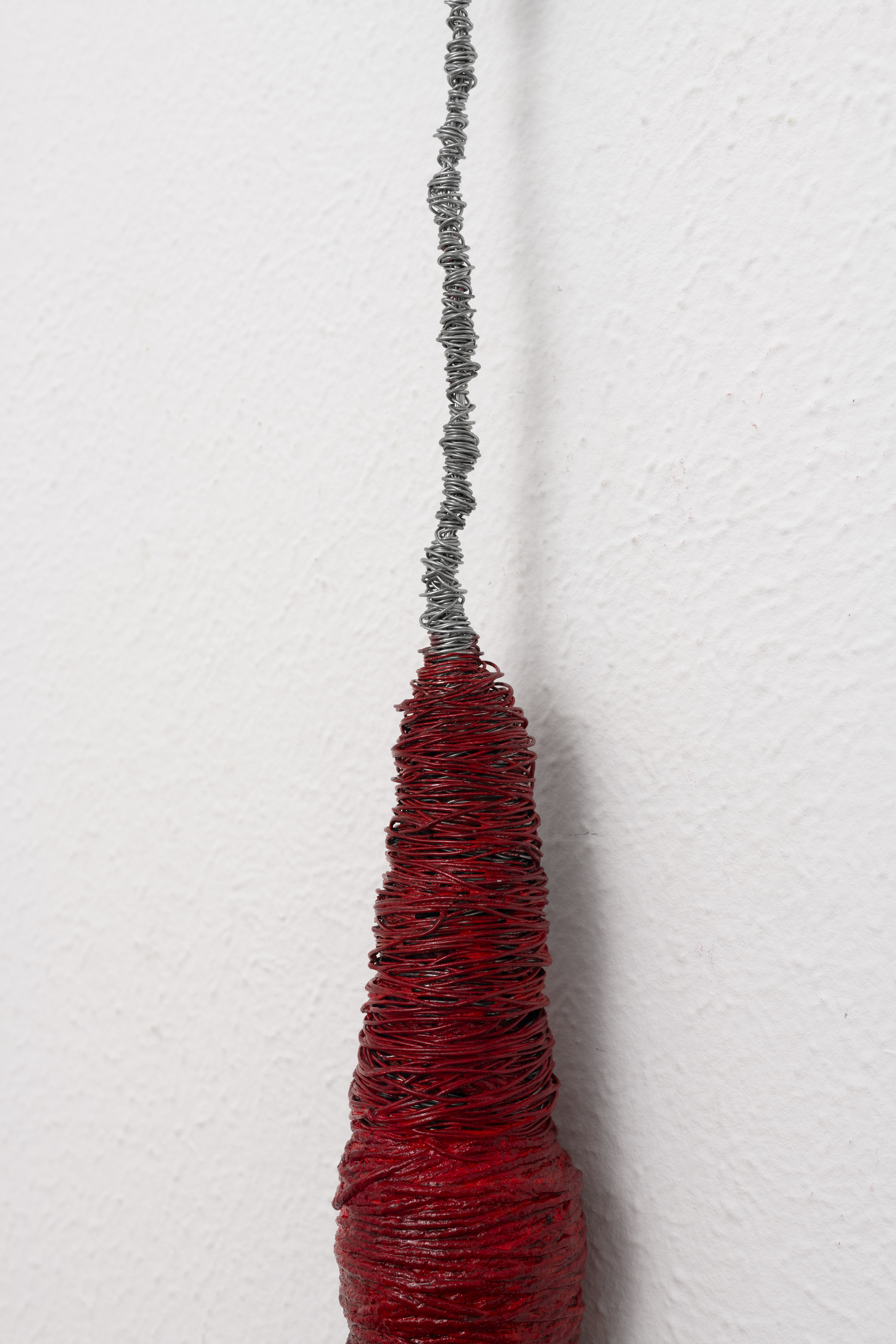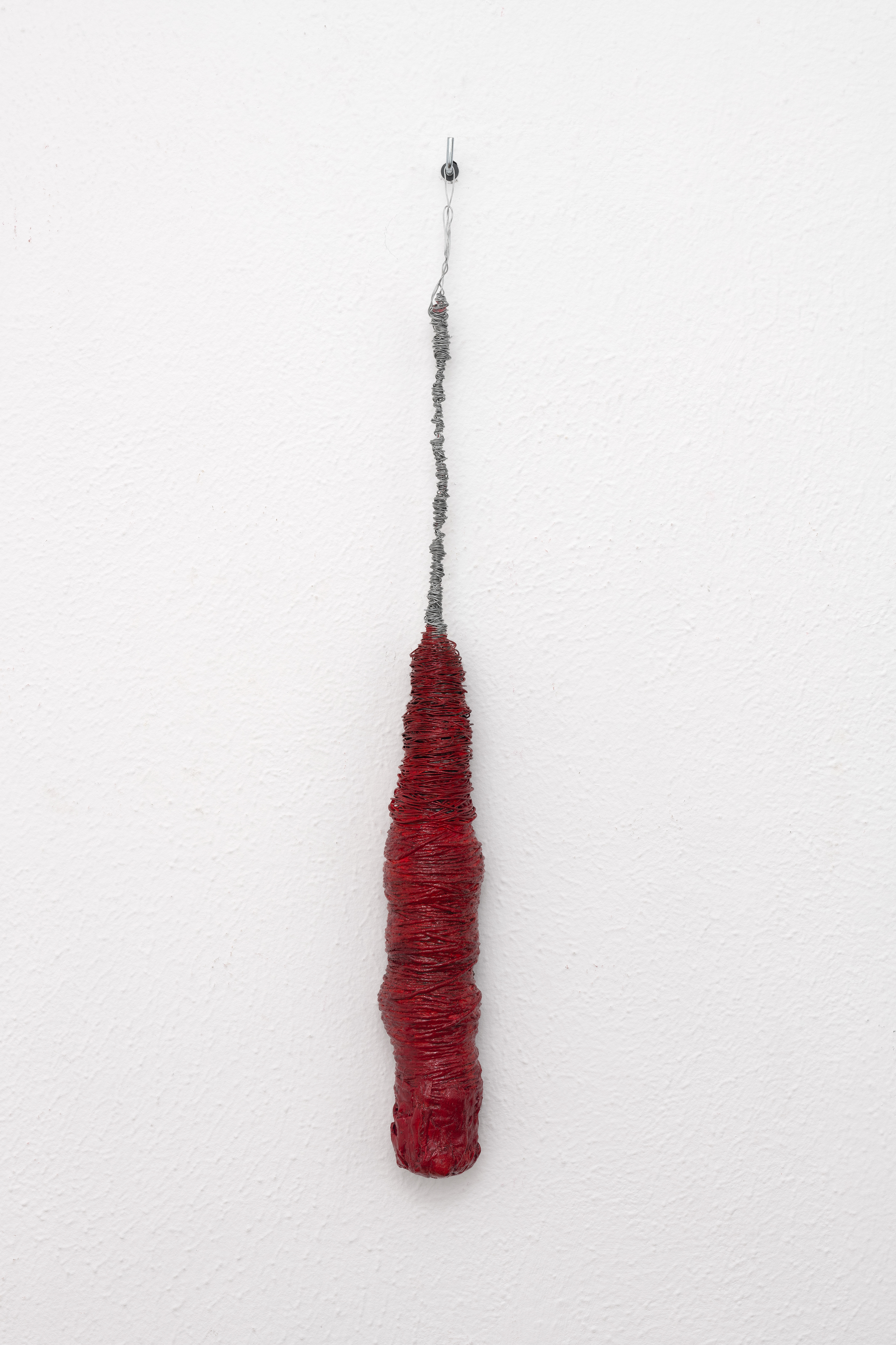 Casulo // Linha de algodão, tecido, arame e acrílica // 67 x 8 x 8 cm // 2023