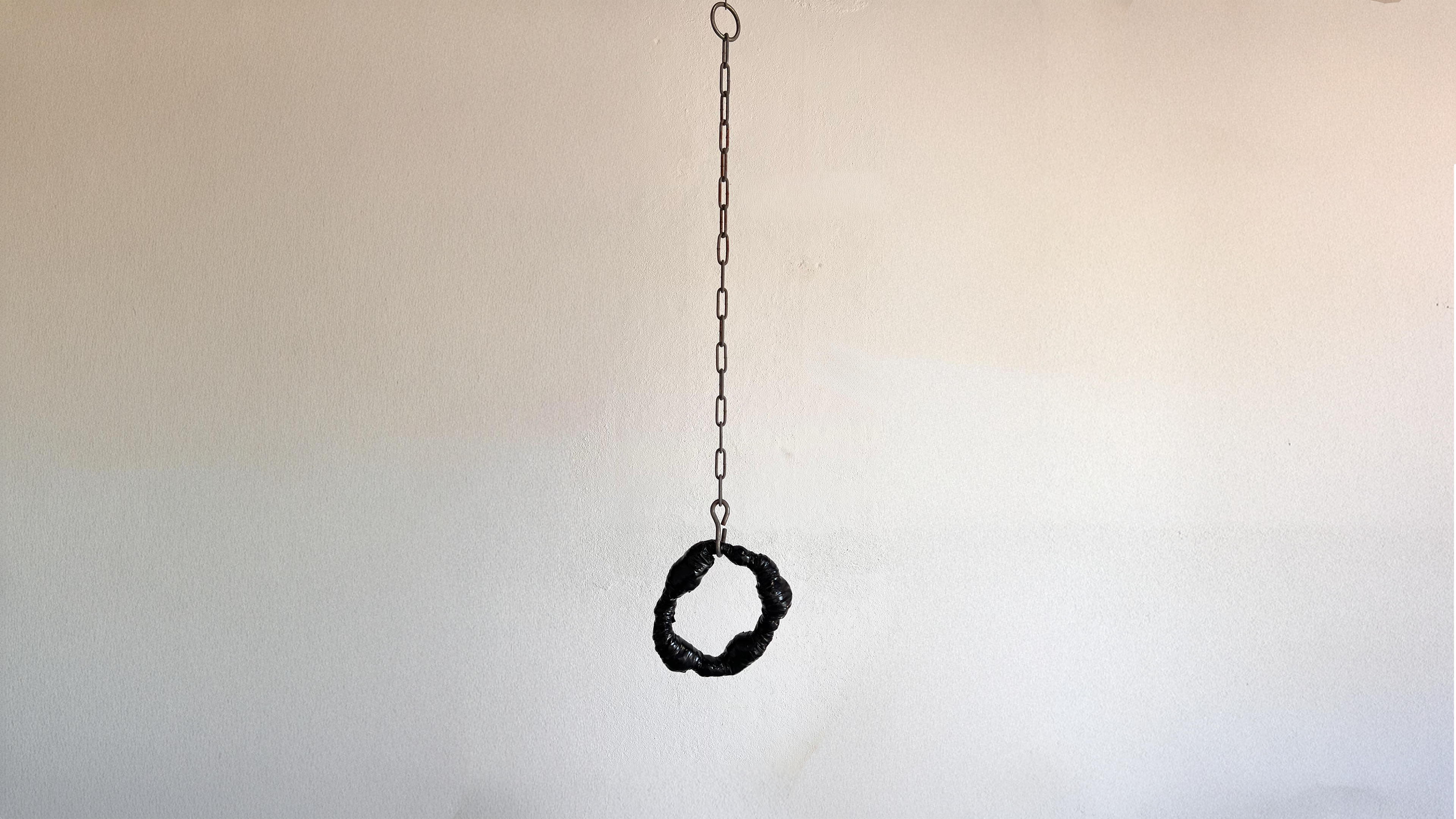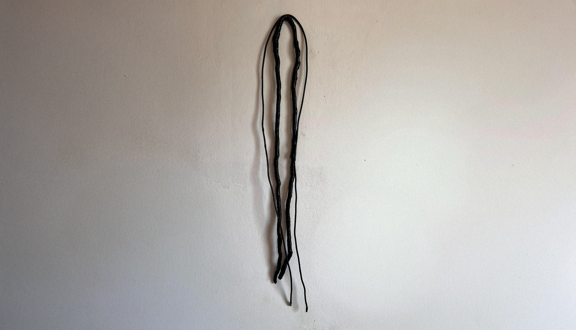 Ruptura suspensa // Tecido, arame e fita isolante // 102 x 28 cm // 2025